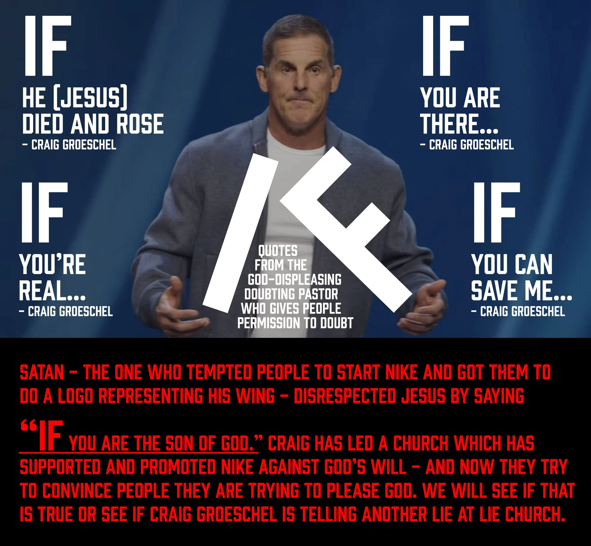 Do not let any person - even a pastor like doubting Craig Groeschel - give you permission to doubt God as you are guided to the truth regarding NIKE.