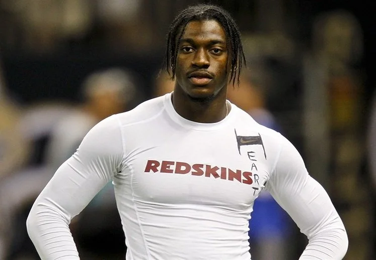 According to NFL.com, Robert Griffin III turned in one of the most-impressive quarterback debuts in NFL history while covering up the NIKE logo - now known to be the wing of Satan.